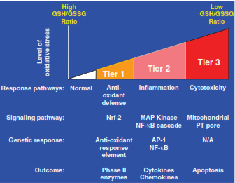 Andre Nel et al. đề xuất 3 mức phân tầng phản ứng sinh học theo mức độ stress oxy hóa, được thể hiện trong Hình 3.2 và Bảng 3.1.
