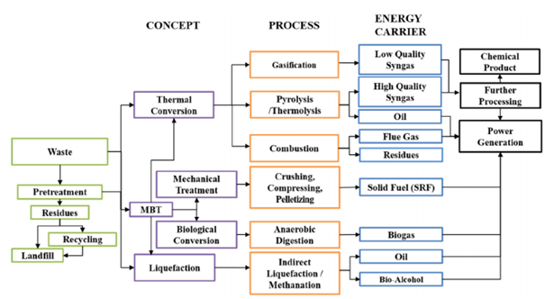 Hình 1. Các con đường cho công nghệ biến chất thải thành năng lượng