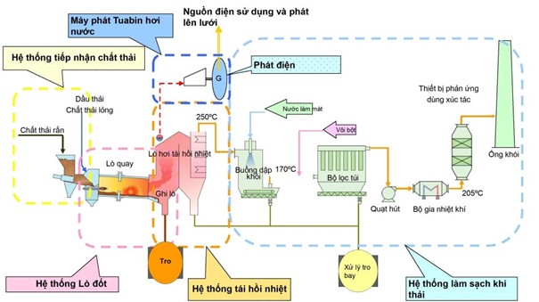 Hình 2. Sơ đồ Công nghệ xử lý chất thải công nghiệp phát điện NEDO