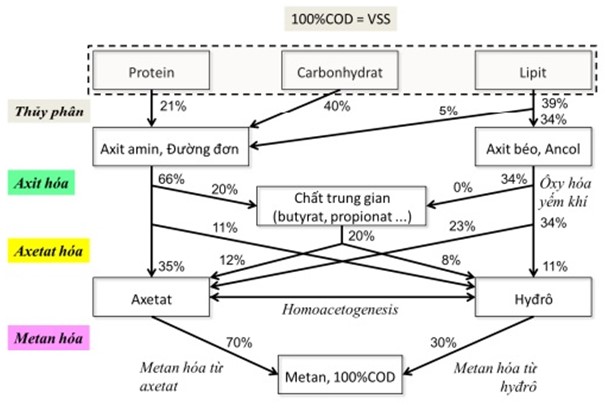 Hình 5. Sơ đồ các giai đoạn quá trình lên men methane