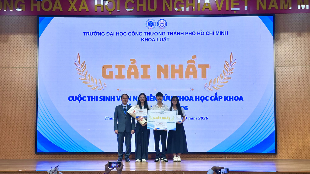 Sáng ngày 28/3/2026, tại Hội trường C, Trường Đại học Công Thương TP.HCM, Khoa Luật đã tổ chức thành công vòng chung kết và trao giải cuộc thi Sinh Viên Nghiên cứu Khoa học cấp khoa năm học 2025 - 2026. Sự kiện thu hút sự tham dự của giảng viên, sinh viên Khoa Luật HUIT.