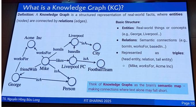 Hàng năm, các hoạt động học thuật diễn ra hỗ trợ sinh viên trường đại học Công Thương nói chung và khoa Công nghệ thông tin nói riêng vừa giúp sinh viên các kỹ năng học tập hiện tại cũng như kỹ năng nghề nghiệp trong tương lai. Trong buổi seminar cuối tháng 10 năm 2025, chủ đề nóng và hấp dẫn được bộ môn hệ thống thông tin đưa ra chính là đồ thị tri thức do diễn giả Nguyễn Hồng Bửu Long trình bày.