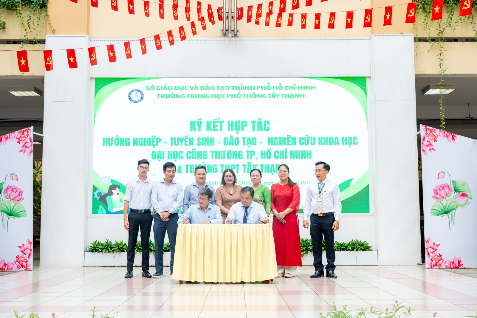 Hình ảnh tại buổi lễ ký kết hợp tác toàn diện giữa Trường Đại học Công Thương TP. Hồ Chí Minh (HUIT) và Trường THPT Tây Thạnh.