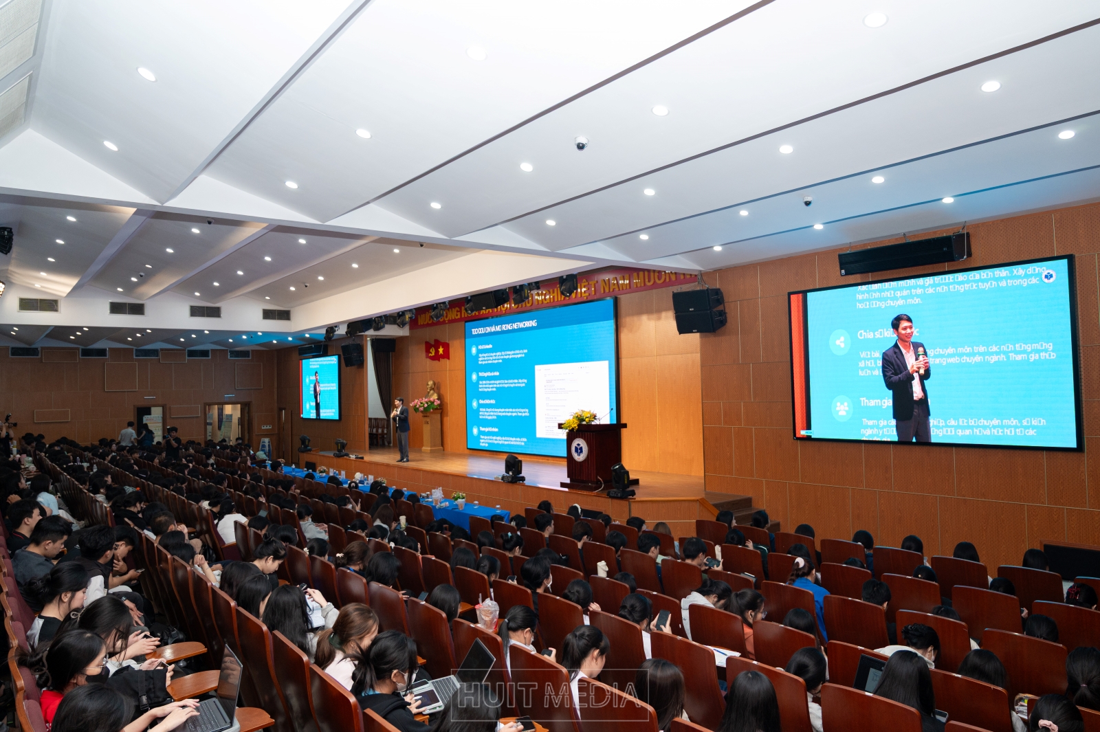 Vào tối ngày 24/10/2025, chương trình Tư vấn Tâm lý Sức khỏe Sinh viên của Trường Đại học Công Thương TP.HCM đã diễn ra thành công, thu hút sự tham gia của hơn 400 sinh viên. Chương trình cũng được livestream trực tiếp trên kênh Facebook của Nhà trường, giúp lan tỏa thông điệp tích cực về chăm sóc sức khỏe tinh thần đến đông đảo sinh viên và cộng đồng mạng.. Đây là một sự kiện cung cấp những kiến thức thiết thực về sức khỏe và dinh dưỡng đồng thời là dịp để sinh viên lắng nghe những chia sẻ quý giá về khởi nghiệp và trách nhiệm với xã hội từ các diễn giả uy tín.