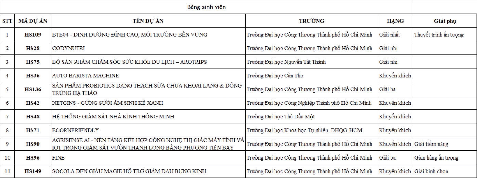 Cuộc thi HUIT Startup 2025 đã thu hút 153 dự án đến từ 46 trường THPT, Cao đẳng, Đại học trong và ngoài TP.HCM. Trải qua nhiều vòng thi, 21 dự án xuất sắc nhất (gồm 10 dự án bảng Học sinh và 11 dự án bảng Sinh viên) đã góp mặt trong vòng chung kết để trình bày ý tưởng, sản phẩm và kế hoạch phát triển trước hội đồng giám khảo. Mỗi dự án là một câu chuyện đầy tâm huyết về nông nghiệp xanh, công nghệ giáo dục, chuyển đổi số, sức khỏe, môi trường – những vấn đề gắn chặt với đời sống cộng đồng và phát triển bền vững.
