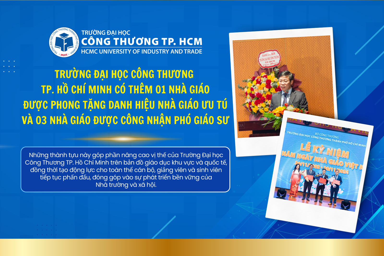 Trong không khí trang trọng của lễ kỷ niệm 43 năm Ngày Nhà giáo Việt Nam (20/11/1982 – 20/11/2025), nhiều tập thể và cá nhân của HUIT đã được Bộ trưởng Bộ Công Thương khen thưởng vì thành tích xuất sắc trong công tác. Cụ thể, Tập thể Trung tâm Tuyển sinh và Truyền thông, Khoa Công nghệ Thực phẩm và 19 cá nhân được trao Bằng khen của Bộ trưởng Bộ Công Thương; đồng thời 04 cá nhân được công nhận danh hiệu “Chiến sĩ thi đua Bộ Công Thương”.