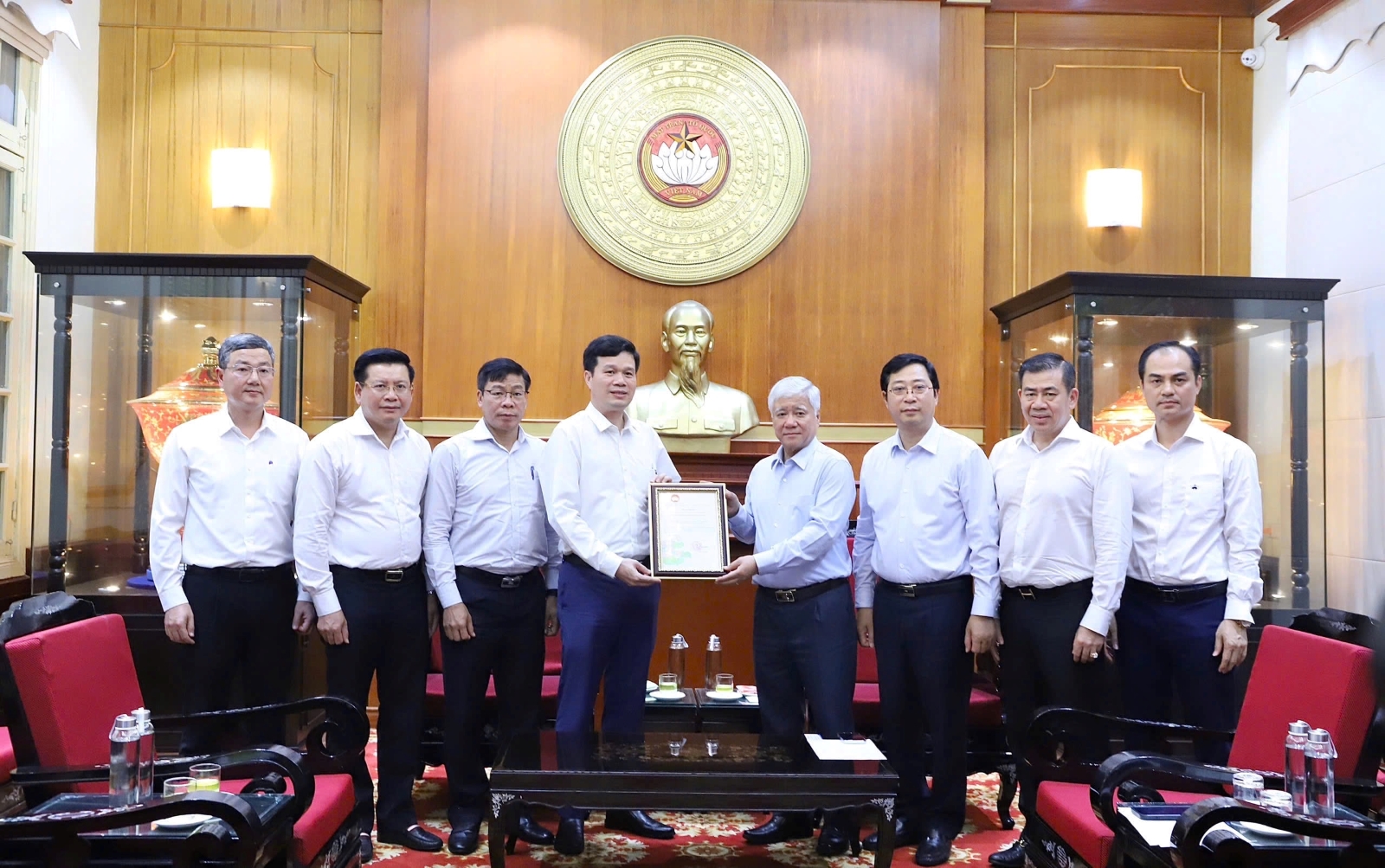 Ông Đỗ Văn Chiến – Ủy viên Bộ Chính trị, Chủ tịch Ủy ban Trung ương Mặt trận Tổ quốc Việt Nam trao thư cảm ơn cho lãnh đạo Bộ Công Thương cùng các trường Đại học thuộc Bộ