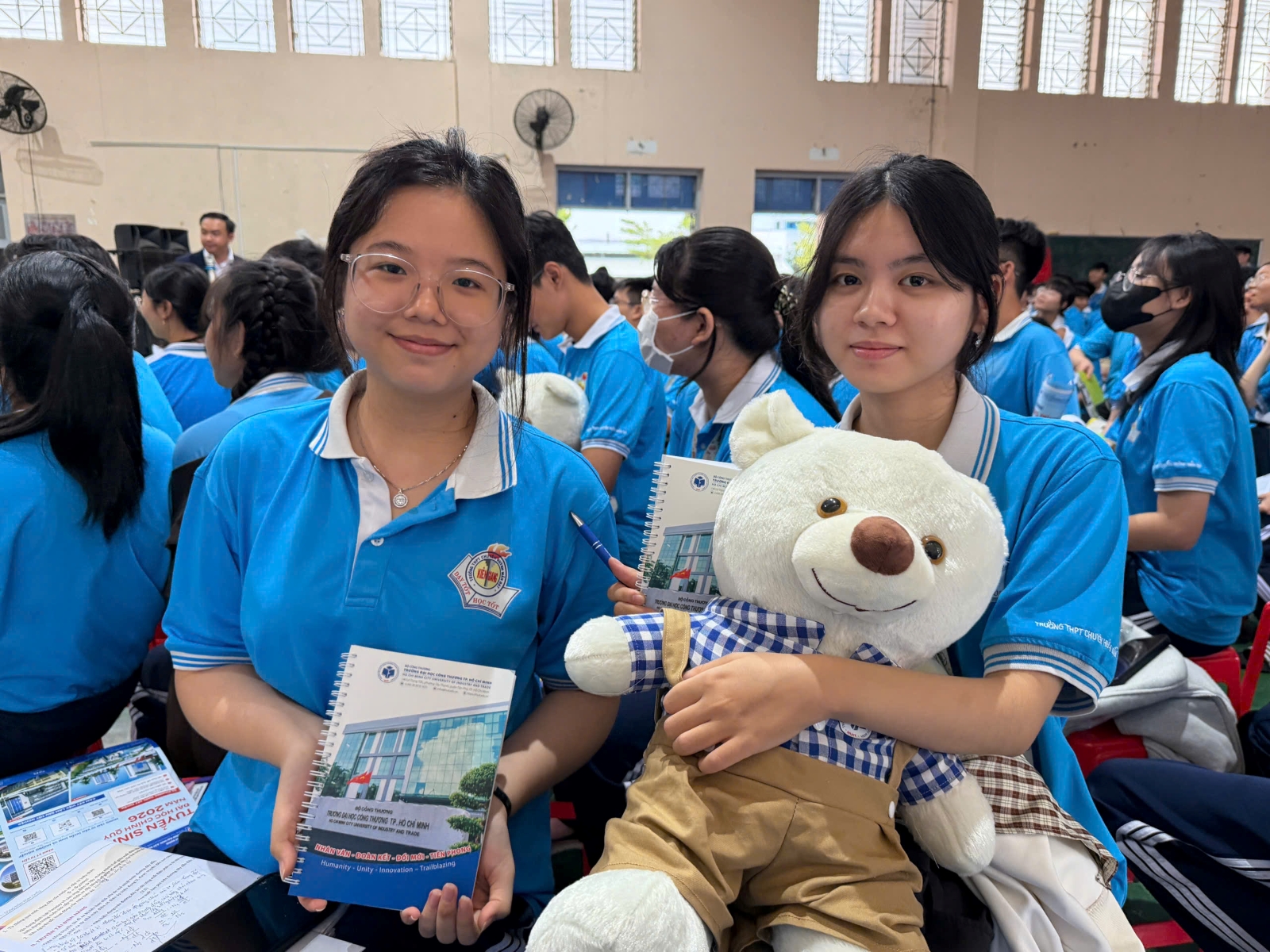 Đại diện Trường Đại học Công Thương TP.HCM đã giới thiệu hệ thống ngành nghề đa dạng của trường, từ các khối kỹ thuật – công nghệ (Công nghệ thực phẩm, Công nghệ thông tin, Tự động hóa, Trí tuệ nhân tạo…) đến khối kinh tế – quản trị (Quản trị kinh doanh, Logistics & Quản lý chuỗi cung ứng, Tài chính – Ngân hàng, Marketing…), cùng các ngành mới như Luật và Du lịch và ngành mới dự kiến mở ngành trí tuệ nhân tạo. Bên cạnh đó là thông tin về học kỳ doanh nghiệp, mạng lưới đối tác rộng khắp trong lĩnh vực thương mại – sản xuất – dịch vụ, tạo điều kiện để sinh viên được thực tập có hướng dẫn, nhiều em được giữ lại làm việc sau khi ra trường.