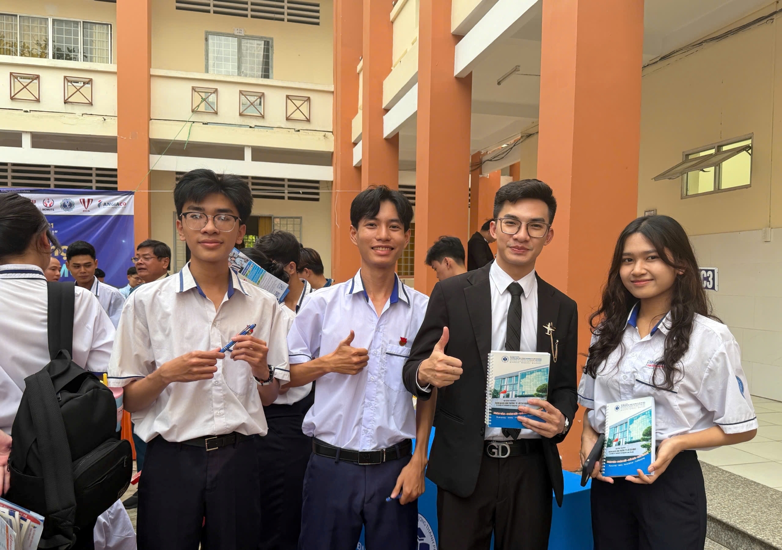 Ở các điểm trường tiếp theo như Mong Thọ, Thạnh Đông, Bình Sơn, Ba Hòn, Kiên Lương…, nội dung tư vấn được điều chỉnh linh hoạt theo đặc thù từng địa phương. Học sinh vùng nông thôn quan tâm nhiều đến chi phí học tập, ký túc xá, cơ hội học bổng; trong khi học sinh khu vực ven biển lại đặt câu hỏi về các ngành gắn với logistics, xuất nhập khẩu, du lịch – dịch vụ. Đại diện HUIT nhấn mạnh thông điệp: “Chọn ngành học không chỉ là chạy theo ‘ngành hot’, mà quan trọng hơn là hiểu mình phù hợp với gì, dám theo đuổi con đường mình tin là đúng”.